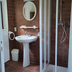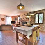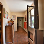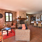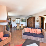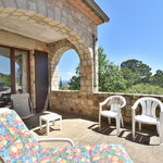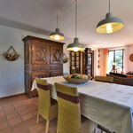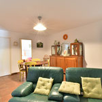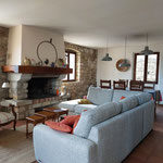 A l'étage: Grand séjour/salon avec cheminée, accès direct sur la terrasse, 2 chambres avec lit en 140, 1 chambre parentale avec un lit en 180 (2x90) et 1 salle d'eau, 1 salle de bain et une toilette.